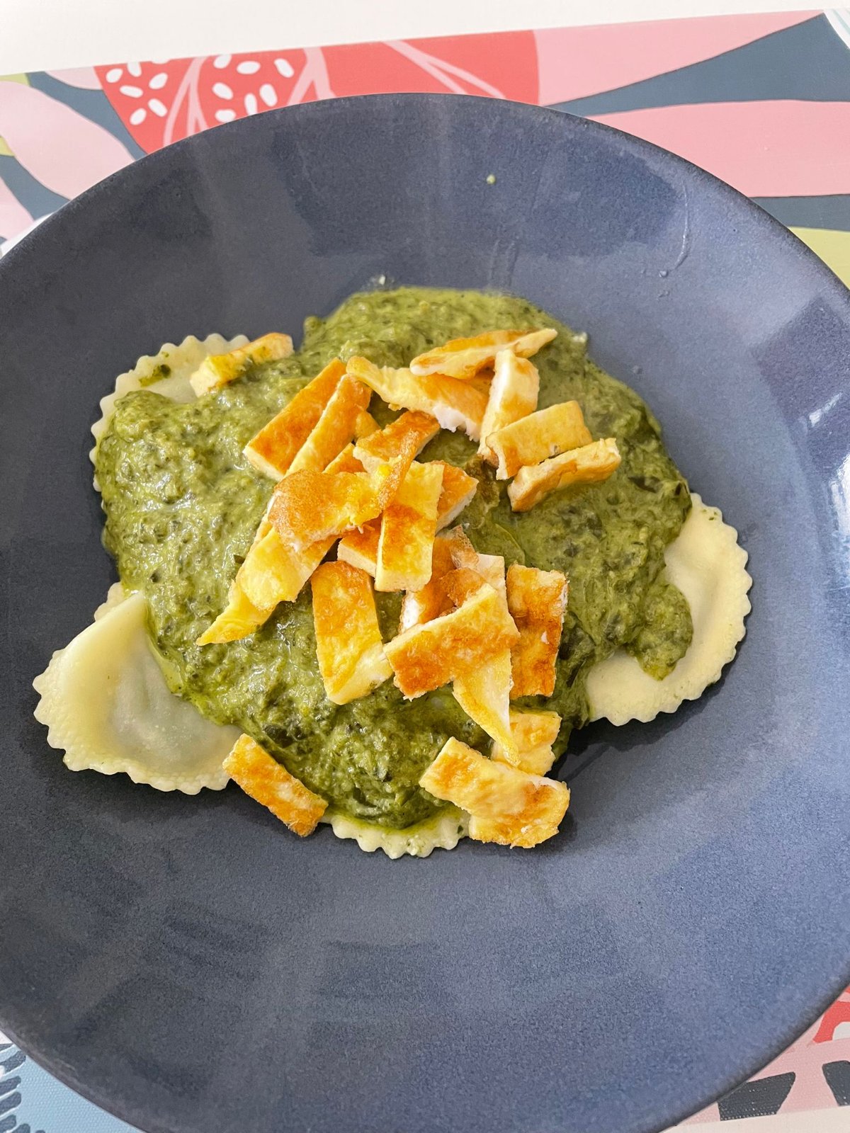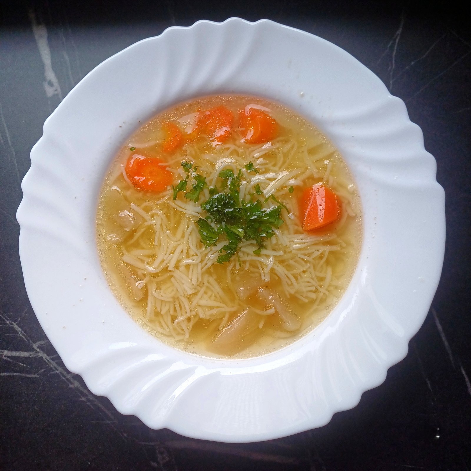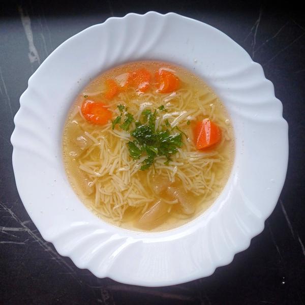 Kapustová polievka s pasirovanymi rajcinami, kurací perkelt s kolienkami...a svieži kiwi zakusok. 👌
