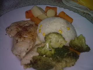 Dnes bol pečený losos so zemiakmi a jogurtovou zeleninou 😵 A ku káve pečiem croissanty s čokoládou a jahodovým džemom 🙂