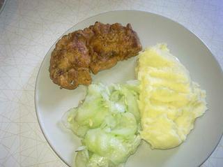 3,morčacie rezne v smotanovo syrovom cestíčku,kaša,uhorkový šalát