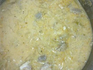 nastruhas ,posolis ,das cesnak,zemiak-je dobry koly skrobu ,muku,majoranku,cierne korenie,vajicka: