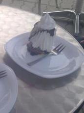 a este foto kolacika,ktorý mi chutí v Mederi ak už nechcem zmrzku je to taka sopka,vnutry je vynikajuci coko krem,recept som nedostala lebo to si ten cukrar co im vozí kolače-zakusky robí ako rodinný zákusok a veru v okolí Bratislavy som to este nikde nevidela a musi to byt aj babracka tolko vrstiev a chutí a pritom nieje moc sladký skor poctivo horko cokoladový