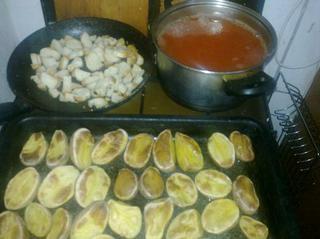 ja varim hovadzi gulas k varenym zemiakom a povodne som mala este aj cuketovu polievku a zapekane kuracie prsia s patizonom ale polievku sa mi nechce robit a namiesto prs som si vybrala odrezky takze nic 😀