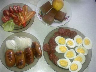 dnes morčací vývar a segedínsky guláš (mäso v týždni výnimočne aj vývar, ale máme majstrov, kt. nám prerábajú, tak aby mali veľa sily...) 😉 a ešte vajíčková nátierka na večeru...