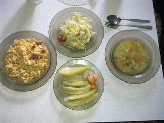 dnesne menu-nakoniec som robila zeleninkovu polievku lebo marek chcel,,larvičkove cestoviny,, 😀 😀 😀 vajcove halusky,zavarane ,,rusle,, a robila som kapustový šalat 😉
