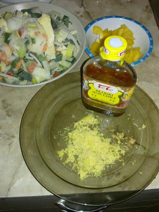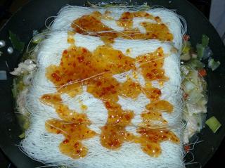 maso narezem nasolim a pokvapkam sojovou omackou,potom ho vo woku osmahnem na troske oleja,pridam zeneninu,nastruhany zazvor,uvarím do makka,pridam cestoviny a sladkokyslu omacku.fotopostup 😉