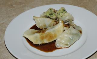 Podavame s goyza omackou, kt. si mozeme pripravit aj doma, jeden diel sojovej omacky, jeden diel ryzoveho octu a trochu sezamovych semiacok.