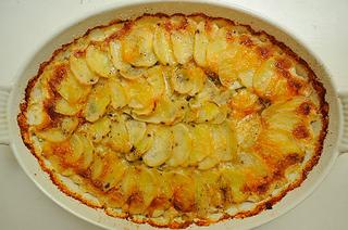 Zapekane zemiaky s porom a hribamy, s grueyer syrom.