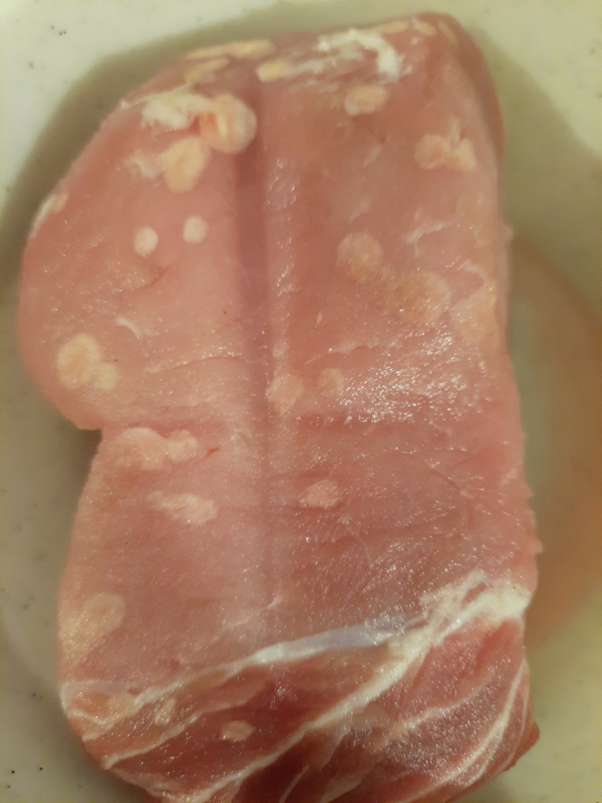 Tie fľaky sú vyschnuté miesta počas mrazu - asi bol zle zatvorený obal, alebo sa dostal vzduch do obalu. Lepšie je mäso pred mrazením vákuovo zabaliť .