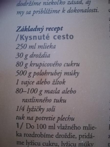 Preto som aj reagovala na javorinska ked spomenula "jeden klasicky" recept, lebo len u nas v rodine ma kazdy insi recept. Kazdy ma ten svoj pre neho najlepsi. Babka davala nizkotucne mlieko a vajicko, to cesto bolo uplne ine. Niekto dava menej drozdia, neda mlieko, iba vodu, niekto dava vajicko, niekto maslo... Ja nemozem ani citit cesta, v ktorych je margarin, hera, palmarin a podobne "plastove hmoty".
