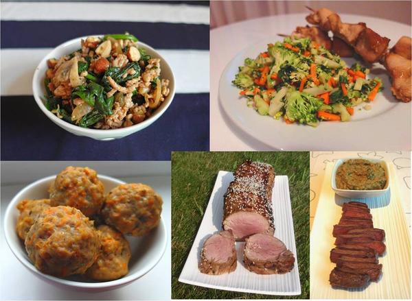 Pre tých, čo sú viac na mäso alebo sú na paleo/keto diéte: mleté mäso so špenátom a lieskovcami http://anetagoesyummi.blogspot.de/2015/01/mlete..., teriyaki špízy s brokolislawom http://anetagoesyummi.blogspot.de/2014/10/azijs..., morčacie guľôčky s mrkvou http://anetagoesyummi.blogspot.de/2014/08/skvel..., teriyaki verzia grilovanej bravčovej panenky http://anetagoesyummi.blogspot.de/2011/07/grilo... a steak s avokádovou salsou http://anetagoesyummi.blogspot.de/2010/12/steak....