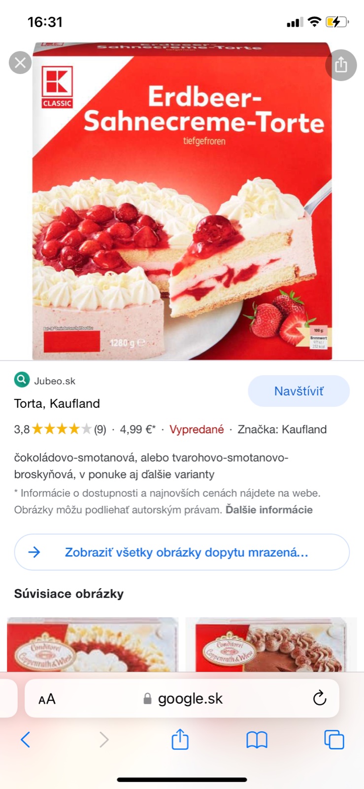 @ika02 ja som videla dnes za 6,99 v akcii pravdepodobne ... o 3€ torte tu písala iba Alexandra