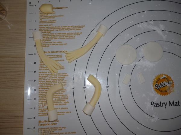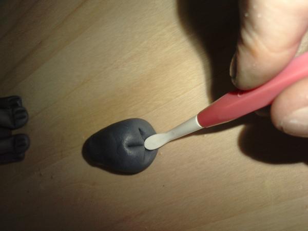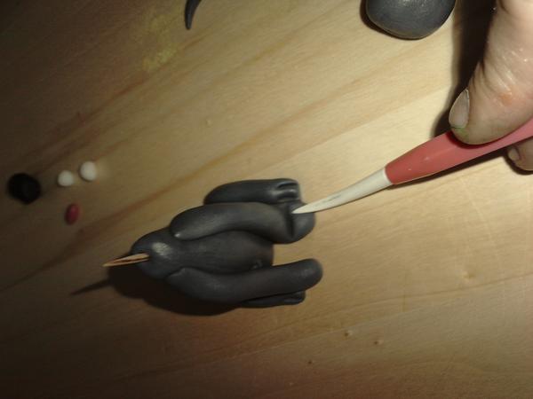4. dáme predné nohy, na konci ohneme kosticou a naznačíme pazúrky
