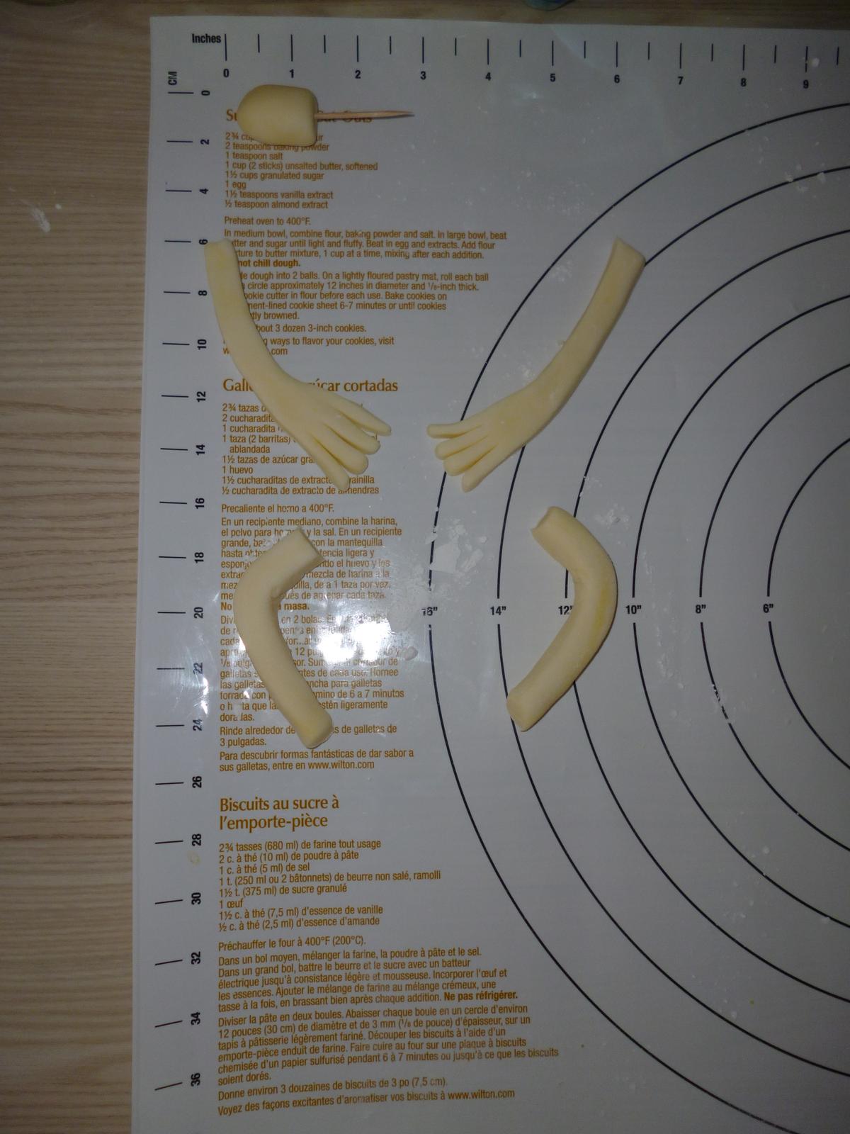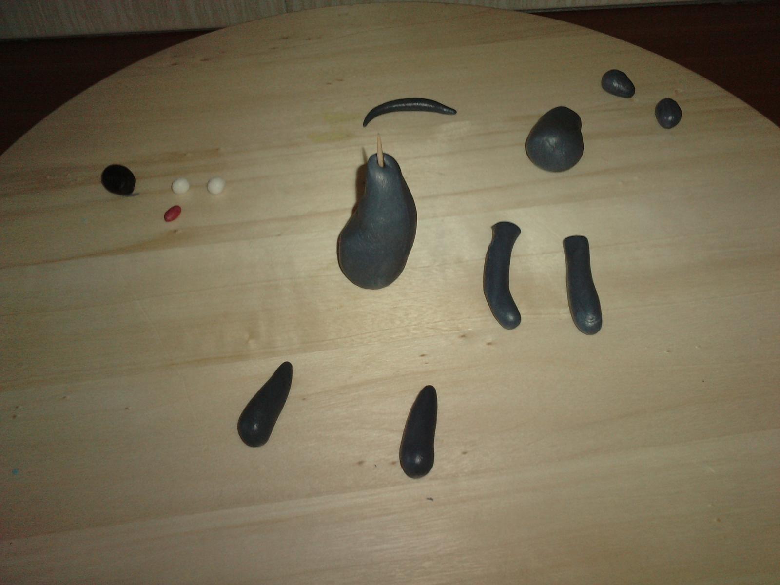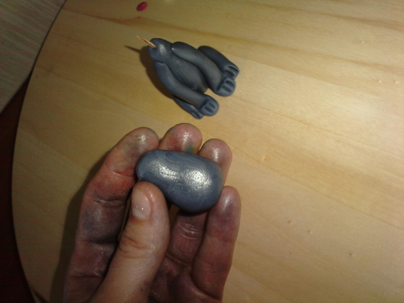 4. dáme predné nohy, na konci ohneme kosticou a naznačíme pazúrky