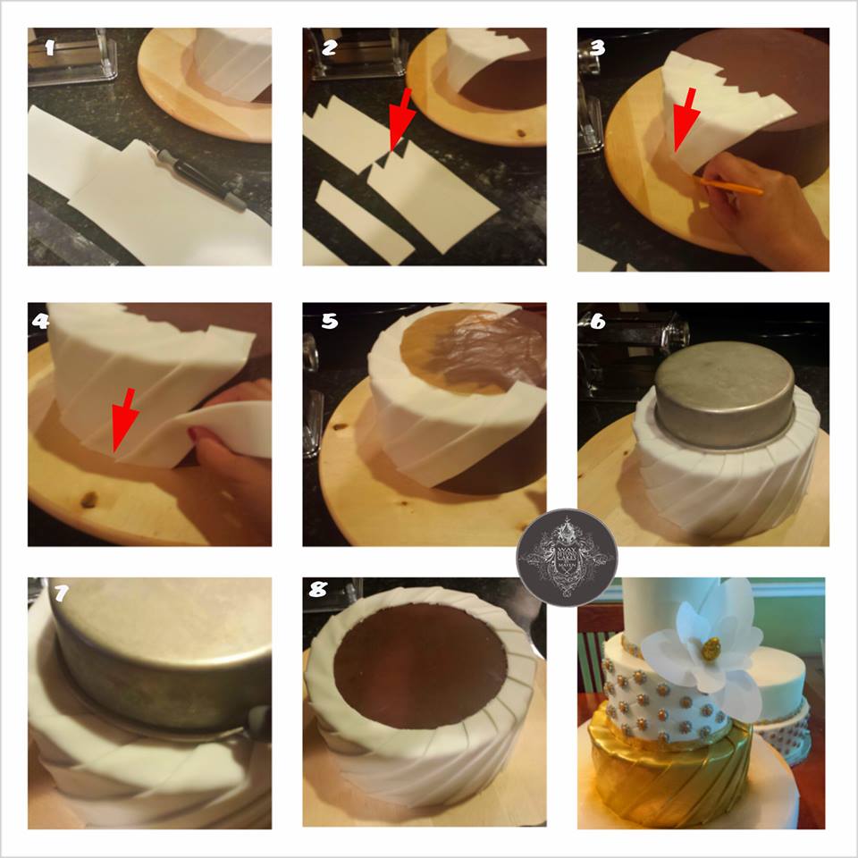 Hey guys ! I am still working on this cake but I was able to take a few photos of the pleats as I made them. I wanted a flat surface for the cake going on top of the pleated tier so here is what I did.