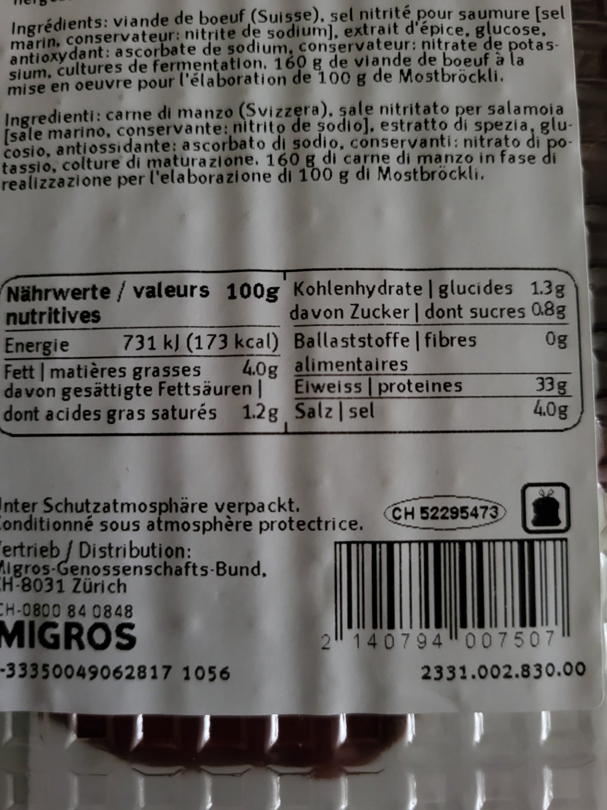 mala by tam byť iba bielkovina a tuk, keď sacharidy tak veľmi máličko ... bežne majú takéto výrobky okolo 170–200 kcal, niečo nad 30 g bielkovín, 3-5 tuku a dosť soli (tiež okolo 5 g)...