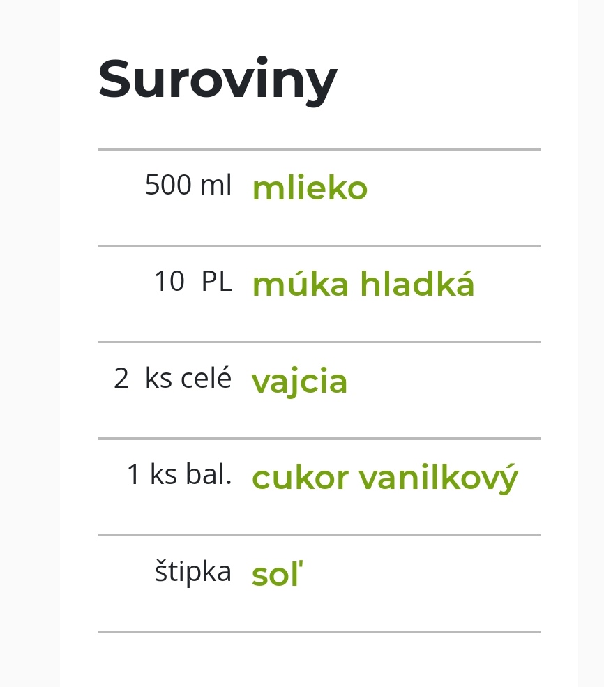 ja som ešte o minerálke nepočula 😲 .. ja dám len olej, vajco, mlieko a hladkú múku ... potom s naberačkou skúšam hustotu a buď dosypujem múku alebo mlieko...