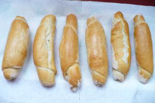 Dnes som skusala zas jedny. Dala som 200ml mlieka a 100ml vody a myslim, ze ked tam je mlieko, je to najlepsie. Potom 400g hladkej muky a 100 polohrubej, 1/4 cerstveho drozdia, 1,5 lyzicky soli a 30g margarinu. Po dokysnuti som to este nechala cca 15-20 minut v pekarnicke, vytvarovala 12 rozkov a nechala este na plechu kysnut. Potrela mliekom a piekla na 200 stupnoch a ku koncu pridala na 220.