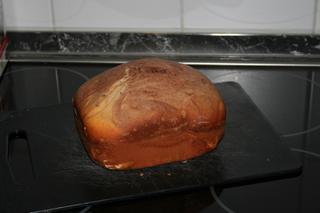 väčší zemiak, 230 ml vlažnej vody, 1 vajce, 1 1/2 č.l. soli, 1/2 p.l. kr. cukru, 2 p.l. oleja, 460 g hl. múky oo ex., 1 1/4 č. l . suš. droždia, štipka sódy bic., 1 č.l. rasce