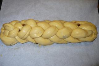 Později přidat rozinky, mandle, atd. Na potření 1 vejce. Pečeme 1O minut na 200 st. pak asi 30-40 minut na 170.