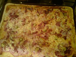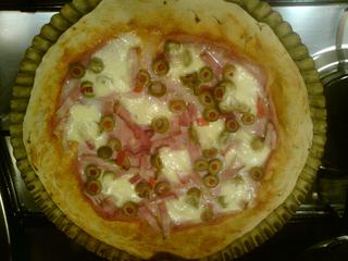 Základem může být rajčatová omáčka nebo jen kečup, zdobíme dle svých chutí. Dáme do hodně vyhřáté trouby a pečeme zprudka 7 - 10 minut.