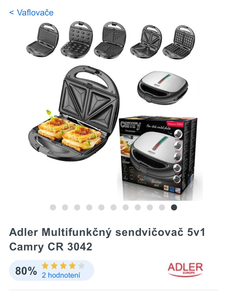 Skúsenosti s vaflovačom - toastovačom Adler Multifunkčný sendvičovač 5v1 Camry CR 3042