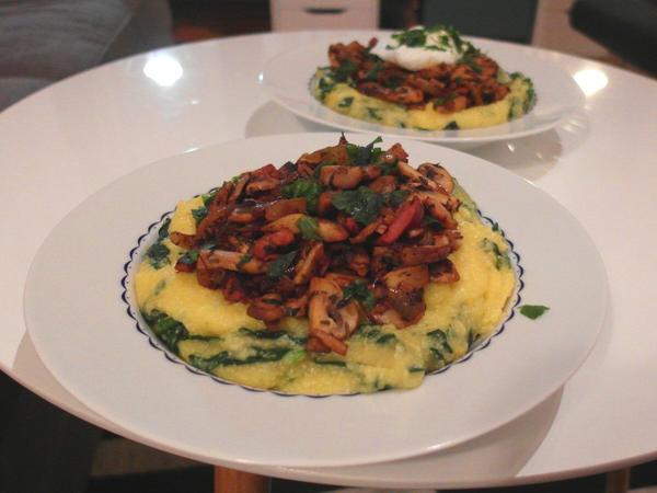 Špenátová polenta s hubami