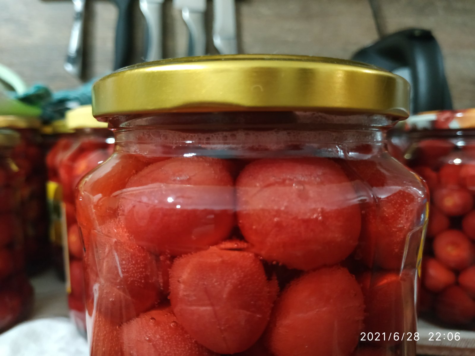 Ked vyberiem z hrnca flasku, tak ju pokotulam na suchej utierke. Takto vidim ci drzi viecko dobre alebo nie... Otocim ich hore dnom a po deku... Ceresne uz mam za sebou...