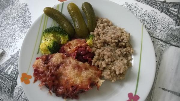 @zuzka_puska zapekana fazula s cviklou (recept z lunarneho kalendara) a ako priloha pohanka. Este naparena brokolica. No a uhorky mojho otca,tie nemusia byt,ale ja prosto take kysle zavaraniny mam velmi rada,tak som neodolala.