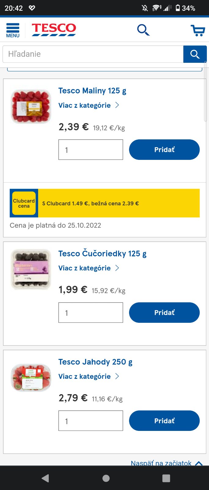 Cerstve ovocie navrch 4 eura (a tam mam aj jahody aj maliny napr.) alebo maliny a cucoriedky