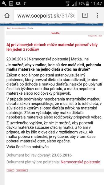 V Mihalovom blogu som sa docitala, ze je dokonca mozne, aby ju poberali rodicia sucasne.Matka na druhonarodene dieta a otec na prvonarodene.