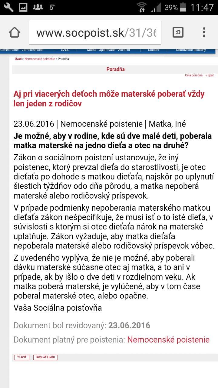 Ahojte, mozte mi prosim poradit baby vase nazory, od 1.11.2016-2.1.2017 som mala dohodu platili sa za mna odvody, od 2.1.2017 mam TPP, termin porodu mam 8.8.2017. Narok matersku by som z dni mala mat, moja otazka vsak je, coho sa bojim som zamestnana v maminej firme so slusnym platom, manzel siel v januari na matersku s malou, takze som sa ja zamestnala. Otazka je realne ze socialka neprizna materske resp. ho odnime ak je zamestnana matka v rodinnej firme? Ma niekto skusenosti? Dakujem za odpovede