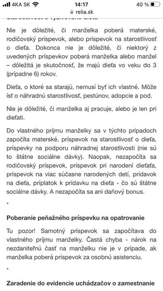 @krasneleto veď to že aj u nás. Ale z toho screenshotu, čo som zdieľala, vyplýva, že aj dobrovoľne nezamestnaná matka 5 ročného dieťaťa má nárok (teda manžel má nárok) - a taká nemá čo vydokladovať.