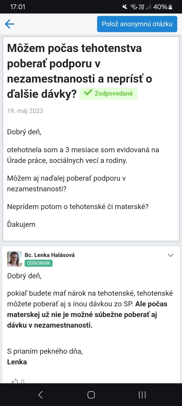 Da sa poberať tehotensky prispevok sucasne s podporou?