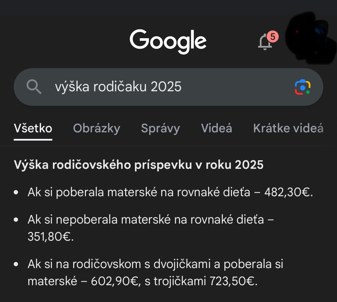 @amiy myslím, že si dieťa z doby, kedy sa bežne používal aj google na hľadanie informácii 🙂 tak ho použi, zaberie to 3 sekundy “výška rodičáku 2025” dokonca už nemusíš žiadnu ďalšiu stránku otvoriť, lebo ti to google rovno napíše ako prvý výsledok