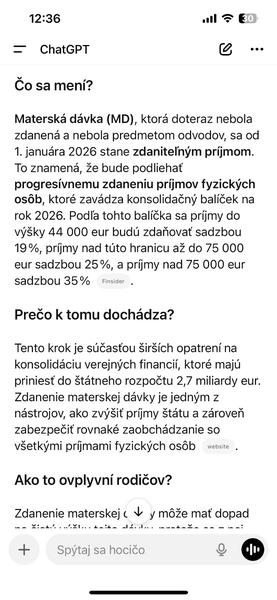 @kristinkaris prečo sa vyjadruješ, keď nemáš kapacitu ani na to, aby si prečítala text? Nikde sa tam o zdaňovaní materskej nepíše. Rovnako tak sa nevyjadruj, ak používaš AI bez toho, aby si s ňou vedela pracovať - tie informácie je potrebné vedieť overiť na oficiálnych zdrojoch. Tak nešír bludy.