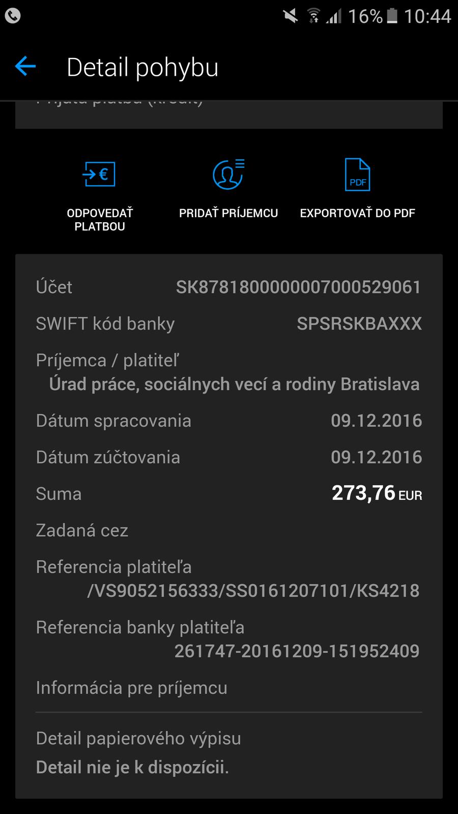 @dai tam je cislo uctu s ktoreho to prislo nie moje moj akurat VS pod ktorym ma vedu a suma. Ale dik za postrech