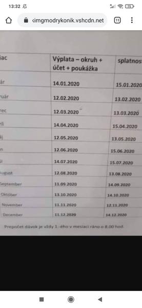 PNky v NO budu vyplacane v pondelok a pridavky a rodicaky v Utorok az Streda