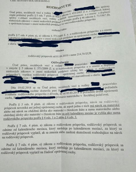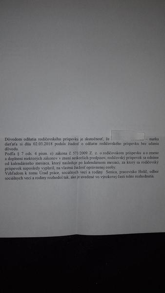 Prosím idem doložiť akurát rozhodnutie do sociálky je to v poriadku keď píšu ze odnímaju od 1.4 z dôvodu že otec požiadal o materské od 5.3 bojim sa aby sa nebili tie dátumy.... Manžel nastúpil na MD od 5.3 a ja som oficiálne požiadala o ukoncenie RD k 4.3. Majú aj tu moju žiadosť ale nestačilo im to práve mi volali nech pošlem rozhodnutie