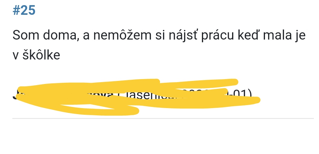 Autorka odporucam MK vyuzit prave aj na pomoc s hladanim prace - hod si diskusiu so strucnym zivotopisom a regionom kde cca hladas. Mozno sa najde niekto kto by vedel pomoct.. Pripadne ak si slobodna mamicka, skus org. Jednorodič, myslim ze aj karierove poradenstvo vedia sprostredkovat.