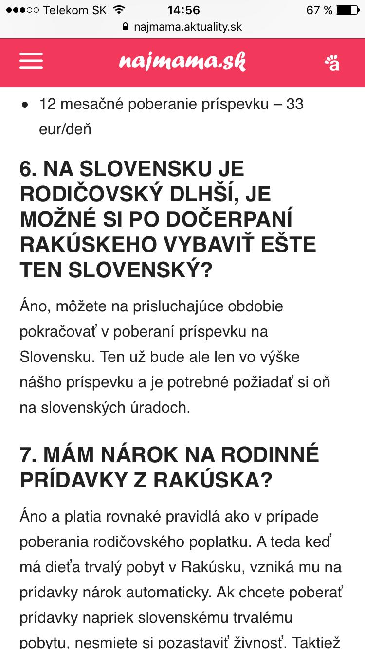 Poberá niekto materskú z Rakúska a žije na Slovensku?