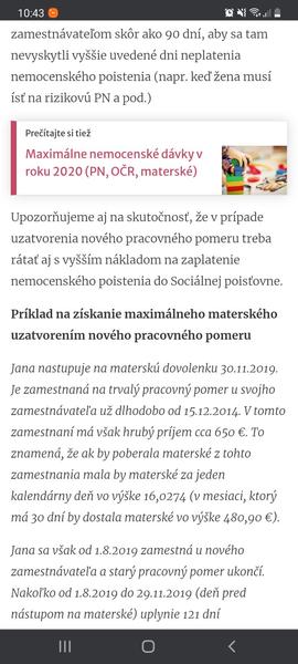 A v druhej diskusii si pisala, ze si bola nezamestnana, tak asi nepracujes vkuse... niezeby to bola vycitka, ale nemozes sa cudovat, ako ti vypocitali tehotenske.