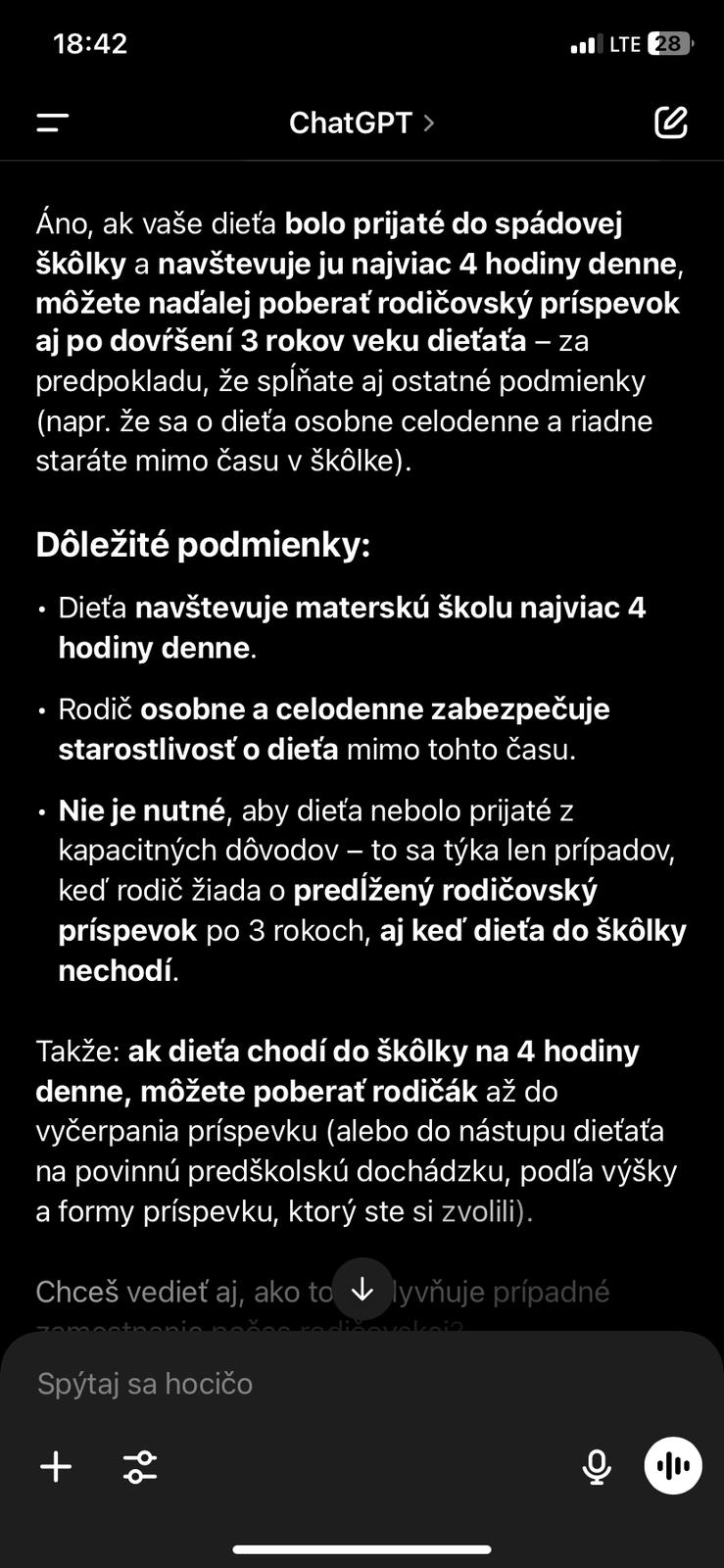 Ahojte je tu niekto kto si dal predlzit rodicovsky prispevok po dovrseni 3. roku dietata a popri tom dava dieta do skolky na 4 hodiny??
