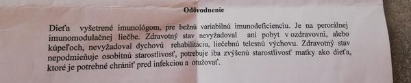 No zamietli mi môju žiadosť. Boli sme teraz aj na liečení a syn mi tam ochorel. Máme respirujuce horné dýchacie cesty....zase sme mali žlté sople a strašný kašeľ. Mám aj prepúšťaciu správu z liečenia. Už sa odvolať nemôžem nakoľko je už po termíne a ja som bola na liečení ked som dostala rozhodnutie. Pôjdem podať novú žiadosť. Zo synom sme pravidelné u pediatricky 2x do mesiaca....od imunologicky berieme už druhé lieky na imunitu čo nám imunitu nezabral dala isoprinosin, ale ani ten nezabral ako vidím na liečení....napriek výsledkom z krvi, že má imunitu v norme nám ich dala....neverim, že syn má imunitu oki....od novembra minulého roka sme non stop na liekoch...ako nebol dva mesiace v škôlke, tak žiadne lieky sme nebrali.....ideme na liečenie a tam mi ochorel....žlté sople a skončili sme zase na unifloxe a liekoch....a nejaký posudkový lekár mi napíše toto. Prikladám rozhodnutie....