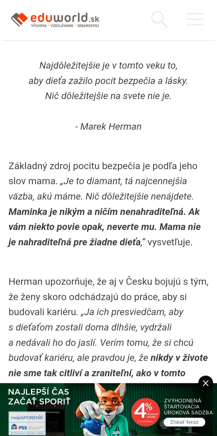 @simona20201309 nijako nepozorujem rozdiely medzi narodmi kde mamy su doma dlho vs kde mamy idu po niekolkych mesiacoch do prace: zo slov. deti co boli doma s mamou nevyrastaju ani lepsi, mudrejsi, empatickejsi alebo tolerantnejsi ludia. Zijem roky v krajine kde sa ide do prace po 3 mesiacoch takze viem porovnat.