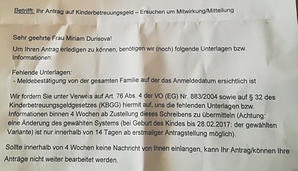 Ahojte maminy. Mám na vás otázku. Tým z vás, ktorým schválili rodičovský príspevok z Rakúska, už vám aj niečo vyplatili? Mne schválili nejakú čiastku no do dnes som nedostala ani cent a to má malý už 15 mesiacov. Skrátili mi rodičovský o 1300 eur, vraj za Mutterkinderpass. Ale neviem prečo, lebo dostali všetky podklady, o ktoré žiadali. Vraj doplatia, keď doplním, to, čo im chýba. Keď sme sa však pýtali, čo konkrétne im ešte chýba, nedostali sme žiadnu konkrétnu odpoveď. Máte niektorá podobnú skúsenosť? Ako mám ďalej postupovať? Vopred ďakujem za každú radu
