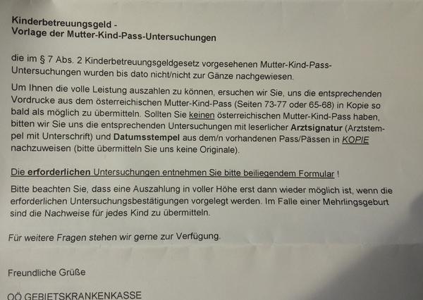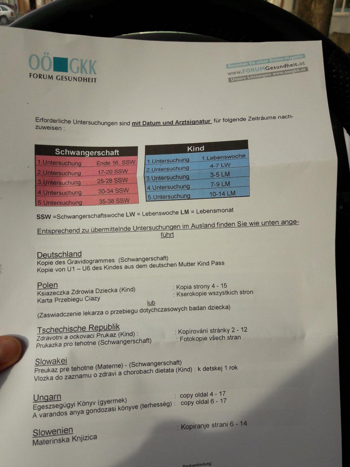 Ahojte, potrebujem poradiť. Doklady, ktoré treba doložiť k vybaveniu rodičovského príspevku v Rakúsku mám takmer skompletizované, ALE chýba mi jeden dosť dôležitý a to spomínaný Mutter Kind Pass. Má to byť nejaké potvrdenie od gynekológa a detského lekára. Poradíte mi prosím,či existuje nejaké tlačivo alebo ako takéto potvrdenie vybavím??? ĎAKUJEM