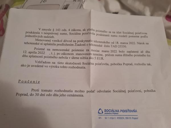 Potrebujem poradit, otehotnela som po tom co som dala vypoved v praci ( poslednych 8r od skoly som vkuse pracovala, nebola ani pn) , no kedze som na rizikovom tam som nemohla ist do práce, tak som dobrala podporu poistila sa uz pocas nej a cakam na rozhodnutie o priznani pn. A teraz otazka, podala som si ziadost na tehotenske dnes mi prislo ze nemam narok lebo som sa oneskorika s platbou o 1 deň za poistné, nevedela som ze to ma termin dokedy to ma byt zaplatené. Teraz otazka, bude to mat v vplyv aj na schvalenie pn a nasledne Materskej? Mam obavy nakolko si platim poistné, robit sa mi teraz neda kvoli rizikovemu , a aby kvoli 1 dnu omeskaniu som zrazu nemala narok na nic mi pride na hlavu, od skoly pracujem vkise teraz si platim nemocenské tak.by ma mrzelo keby som kvoli 1 dnu nemala naroo ani na pn a nasledne na matersku... prosim o.radu tie co sa v tom vyznajú