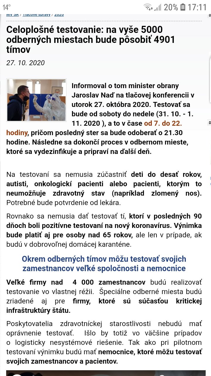 @falbala132 vďaka, už nám dokonca prišla zo školy sms ze mame napísať výsledok testu ako dopadli deti, alebo napísať ze sme sa testovať nedali, nechápem, sak do školy aj tak nechodia a nebudú minimálne ani do konca novembra,