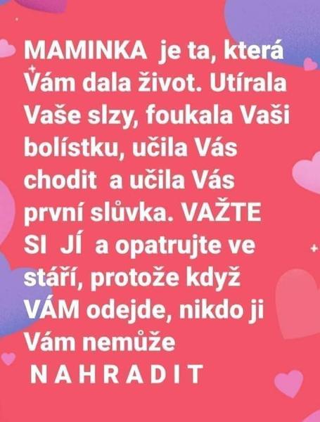 @andreadca my to máme v rodine rovnako, moja mamina bude mať za chvíľu 80 a keby som jej zavolala, že potrebujem pomôcť, tak neváha, sadne na vlak a valí do Prahy... ale ja to od nej už nežiadam, pomohli nám dosť, keď sme boli zobáci. Len to proste beriem tak, že nie všade to tak funguje, nie každý starý rodič má čas a záujem a nie každý, kto ho aj má, ho chce celý venovať vnúčatám...