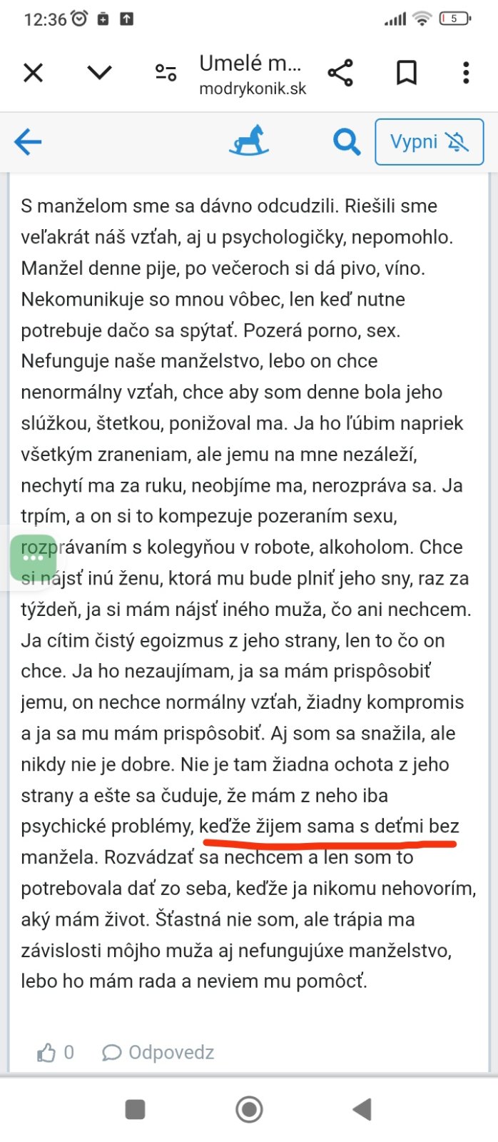 Ale uz nebudem s tebou komunikovat, pises na mna ako keby som ja bola ten jej manzel a este mi tu podciarkuj vety, ako keby islo o slovickarcenie, ze som nieco prehliadla, ked som to narychlo citala. Asi sa velmi nudis. Pointa je ina a inde. Pekny den